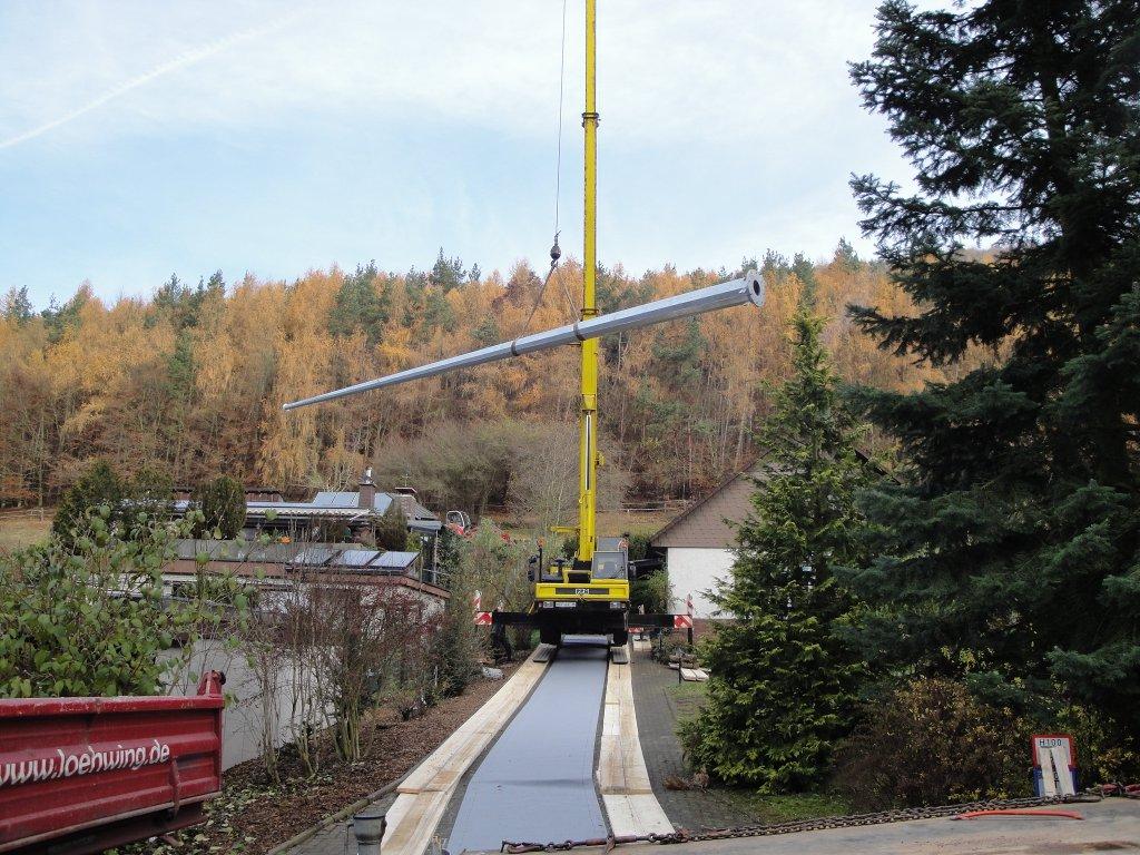 Vorbereitungen der Installation einer Windkraftanlage.